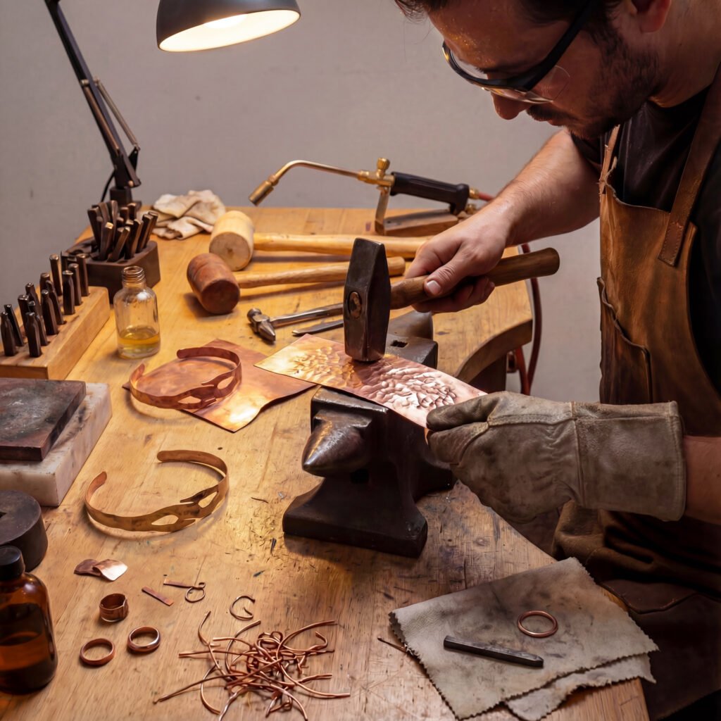 Our artisans spend 40+ hours per piece using hand‑piercing, cold‑forging, and hand‑soldering. This creates Sterling Silver and Copper jewelry that wears more beautifully than mass‑produced, showing visible proof of human skill.